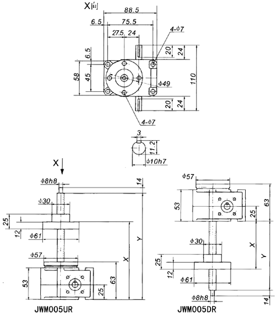 當前位置:減速機首頁 >> 產(chǎn)品大全 >> 升降機 >> JW螺旋升降機 >> JWM005絲杠升降機外形尺寸表
