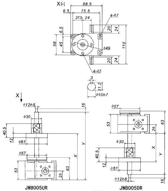 | 當(dāng)前位置:減速機(jī)首頁 >> 產(chǎn)品大全 >> 升降機(jī) >> JW螺旋升降機(jī) >> JWB005絲杠升降機(jī)外形尺寸表 |