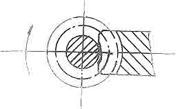 蝸輪蝸桿接觸面積是蝸輪減速機(jī)質(zhì)量的綜合反映。以前裝配工靠手盤(pán)動(dòng)減速機(jī)的感覺(jué)來(lái)判定裝配是否到位,不能正確判斷蝸輪蝸桿的接觸面積及位置,F(xiàn)建立試車(chē)臺(tái),將裝配好的蝸輪減速機(jī)的蝸桿涂上紅丹,在試車(chē)臺(tái)上運(yùn)轉(zhuǎn),觀察接觸斑點(diǎn)位置,根據(jù)接觸斑點(diǎn)位置來(lái)調(diào)整蝸輪位置。要求接觸斑點(diǎn)位置稍偏于嚙出側(cè),使入口形成油楔(見(jiàn)圖1),然后進(jìn)行跑合。