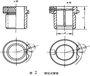 1、 固定式鏜套圖2與快換鉆套結(jié)構(gòu)相似,加工時(shí)鏜套不隨鏜桿轉(zhuǎn)動(dòng)。A型不帶油桿和油槽,靠鏜桿上開的油槽潤滑;B型則帶油杯和沒槽,使鏜套和鏜桿之間能充分地潤滑,從而減少鏜套的磨損。