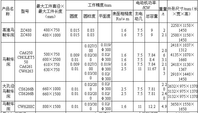 表 8-5馬鞍車床的型號與技術參數(續(xù))