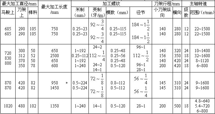 馬鞍車床的型號與技術參數 (續(xù))