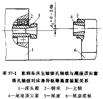 例如,要查明圖57-1所示車床精度標(biāo)準(zhǔn)中主軸錐孔軸線與尾座頂尖套軸線對床身導(dǎo)軌的等高度的裝配尺寸鏈。