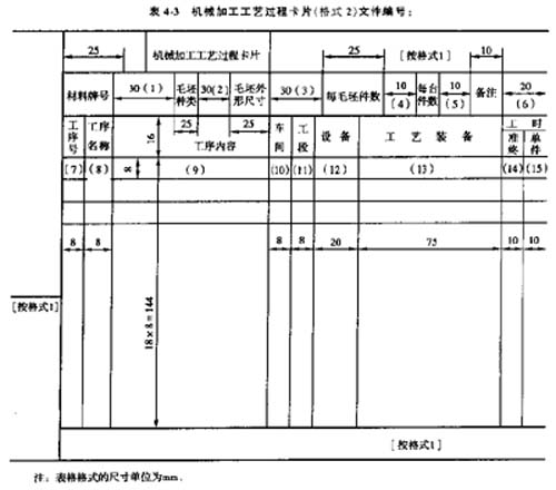 批大量生產(chǎn),除了有較細(xì)的工藝過程卡外,還要編制機械加工(或裝配)工序卡。目前,生產(chǎn)中用來說明工藝規(guī)程的幾鐘工藝文件,其需包含的內(nèi)容和具體格式已經(jīng)標(biāo)準(zhǔn)化(見JB/Z187·3—82)。表4-3~表4-6摘錄了機械加工工藝過程卡片和機械加工工序卡片的填寫格式和填寫內(nèi)容。