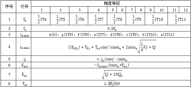 A5各精度等級的極限偏差和公差與蝸桿、蝸輪幾何參數(shù)的關系式見表A3、表A4。