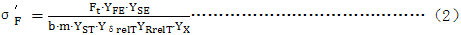 注:公式(1)和(2)計算的齒根彎曲應(yīng)力已將試驗條件及試驗齒輪轉(zhuǎn)換成GB3480所要求的標準狀態(tài)。