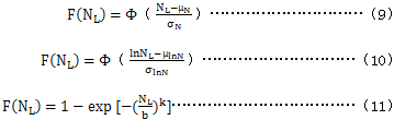 9.3在未知試驗齒輪的壽命分布函數(shù)時,一般采用正態(tài)分布,對數(shù)正態(tài)分布或二參數(shù)威布爾分布進行分布檢驗,確定分布類型,三種分布函數(shù)分別為: