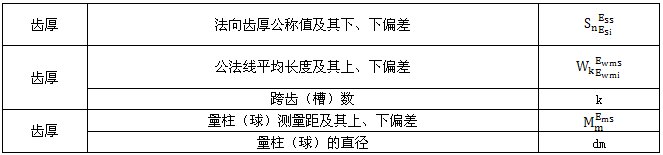 表1-142齒厚的向種檢驗方法在表格中的標(biāo)注示例