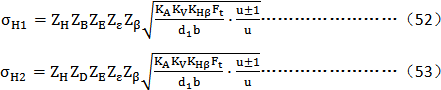小輪和大輪的計算接觸應力σH­­1和σH­­2分別按下述兩式確定: