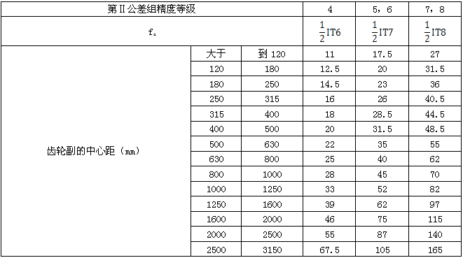 注:一個(gè)軸向齒距內(nèi)的齒向公差按軸向齒距查表。