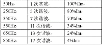 根據(jù)諧波分析,在變頻器電路中不含3次及3的整數(shù)倍諧波分量。在三相對稱系統(tǒng)中,3的整數(shù)倍諧波可自行消除,可以不考慮,亦無偶次諧波。其各次諧波峰值可達(dá)到的百分比如下表所示: