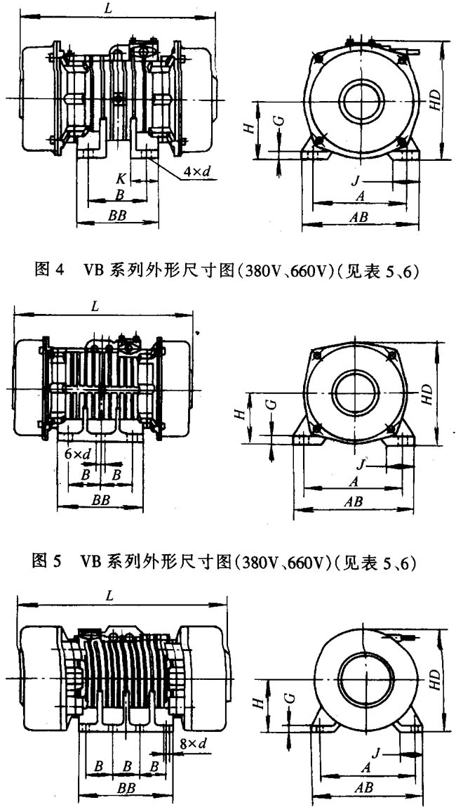 VA、VB系列振動(dòng)三相異步電動(dòng)機(jī)外形及安裝尺寸
