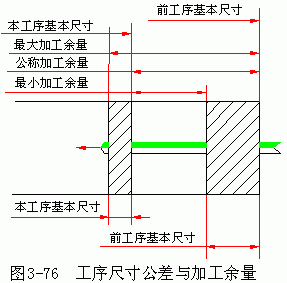 圖 3-76 表示了工序尺寸公差與加工余量間的關(guān)系。余量公差是加工余量間的變動范圍,其值為