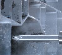 但是,已經(jīng)證明在最高懸伸長(zhǎng)度下用只帶兩個(gè)排屑槽的刀具能以23,640r/min的速度進(jìn)行切削-這個(gè)速度非常接近最高主軸轉(zhuǎn)速。在該轉(zhuǎn)速下可以實(shí)現(xiàn)的切深為1.8mm。