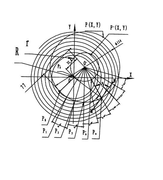 | 一種擺線蝸盤減速機,由機架、底板和機身所組成,其特征在于:它由擺線盤,滾盤和機架組成, 擺線盤由盤體,Ⅰ軸組成,Ⅰ軸緊固于盤體左側中心孔內,盤體為圓盤狀,它的前側面為錐形,錐面為“類單葉雙曲面”,面上有曲線槽,這曲線為“雙勻速擺線”公式為: *** 其中R。遥,r取±|r|;曲線槽的法向切面形狀及各部份幾何參數計算關系的標準化同于齒輪、齒條,或類似于梯形、鋸齒螺紋的幾何關系; 滾盤由盤身,Ⅱ軸以及K個滾輪、小軸、小套、鎖母組成;盤身為圓盤狀,它的中心右側固定著Ⅱ軸,盤周有K個斜孔,斜孔內有螺紋配合著小套,小套左端由鎖母鎖定,小軸右端固定著滾輪,小軸的滾輪左側及小軸左端有軸承安裝于小套內;滾輪為單片錐形圓盤狀,它的H側面為凹錐面或平面,另一J側面為錐面;滾輪與擺線盤嚙合時它的H側凹錐面與曲線槽的凸側面相靠,J側錐面與曲線槽的凹側面相靠,這H、J兩側面交角d取曲線槽兩側齒形壓力角的和; 機架由機身,左蓋、右蓋、左壓盤、右壓盤組成;機身是下部有底板的圓筒,底板是四周有安裝孔的平板,左蓋、右蓋均為盤形,它們分別安裝于機身的左、右兩端面,左蓋中心固定有與其中心線有一偏斜角的斜套,斜套孔內用軸承安裝著Ⅰ軸,左壓盤固定于斜套左端,它是緊壓Ⅰ軸左端軸承外圈的圓盤,它中心有孔,用密封圈套于Ⅰ軸左部;右蓋中心固定有大套,大套孔內用軸承安裝著Ⅱ軸,右壓盤固定于大套右端,它是緊壓Ⅱ軸外端軸承外圈的圓盤,它中心有孔,用密封圈套于Ⅱ軸右部;Ⅰ、Ⅱ軸均伸出機架,兩軸中心距為R+r,滾盤一側的滾輪與擺線盤一側的曲線槽達正確嚙合而另一側為分離狀態(tài)。 |