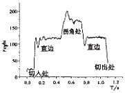 常規(guī)NC加工在制定刀具走刀路徑的時(shí)候,一般采用等切厚切削,即在一次走刀過程中徑向切深為一定值。但是,在圓角過度處,加工問題較大。在高速銑削加工薄壁結(jié)構(gòu)時(shí), 問題尤為顯著。在我們的圓角切削力實(shí)驗(yàn)中,可以發(fā)現(xiàn)刀具在圓角處的切削力有顯著的突變(見圖5)。