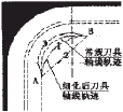 細(xì)化圓角刀具路徑的方法,其思想就是在走刀過程中,保持刀具切入角恒定, 或者附加走刀路徑,即減小刀具在圓角處的徑向切厚,從而避免切削力的超值突變。具體的細(xì)化刀具路徑圖如圖8、9 所示。
