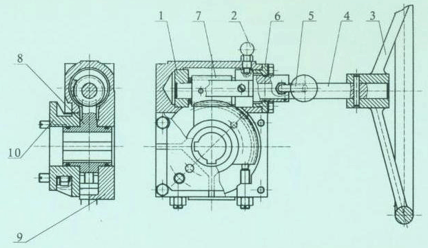 1、減速器底面與閥門(mén)連接,支架面與氣缸連接,閥軸與蝸輪內(nèi)孔配合穿過(guò),閥軸端四方與氣缸方也配合。(工作過(guò)程:氣動(dòng)時(shí),氣缸帶動(dòng)閥軸,蝸輪同轉(zhuǎn)。手動(dòng)時(shí),蝸桿與蝸輪嚙合,帶動(dòng)閥軸轉(zhuǎn)動(dòng),氣缸活塞亦隨動(dòng)。)