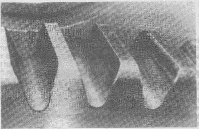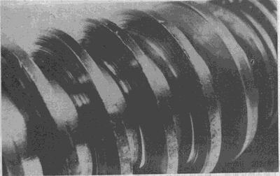 蝸桿螺旋工作面頂部的明顯飛邊。這種飛邊是由于壓力和沿有效齒面滑動的作用產(chǎn)生塑性變形所致。