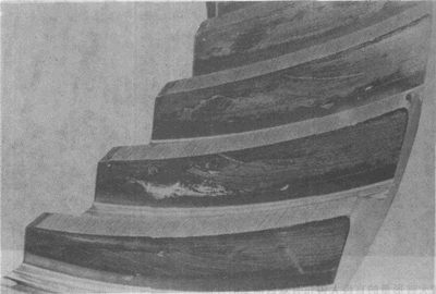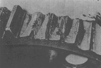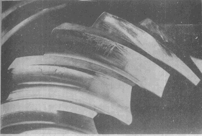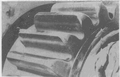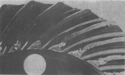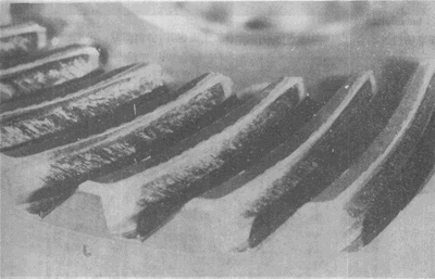 弧齒錐齒輪輪齒上的嚴重膠合。有時這種損傷引起工作溫度升高。