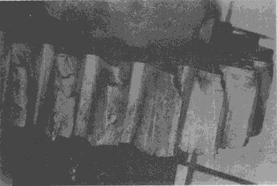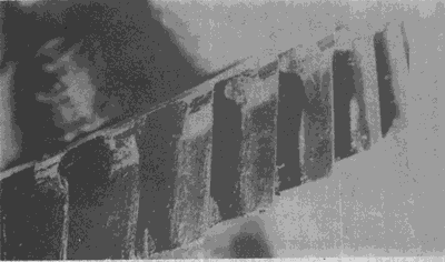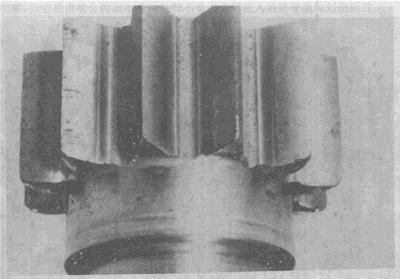 在這幾個輪齒上由于齒輪傳遞的載荷集中于靠近一端的一小部分齒面上,因而造成齒面嚴重點蝕,從而導(dǎo)致其下一輪齒疲勞折斷。