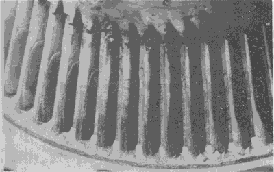 在齒面的齒根高部分可見深的徑向溝槽。