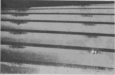 大齒輪齒面的初期點蝕。點蝕密度最大區(qū)與表面載荷最高區(qū)相一致。