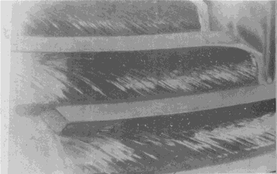 在大齒輪齒頂形成的淬火裂紋(這種裂紋通常都在這個區(qū)域出現(xiàn))。