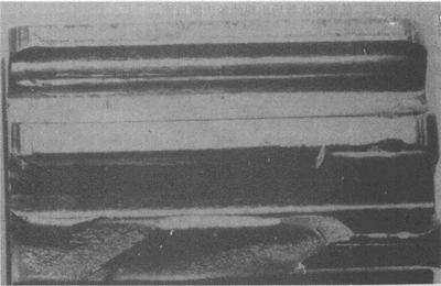 大齒輪齒面上的正常磨損。在圖中,可看到齒面上的光亮區(qū)域以及帶細微溝槽的區(qū)域。