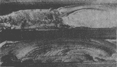 表示齒面一個蝕坑如何在齒面里層發(fā)展的一輪齒橫截面。