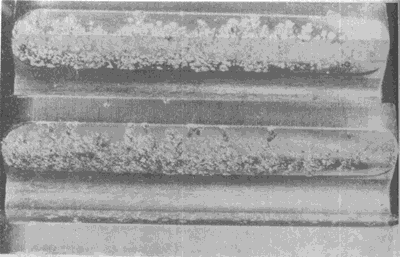 由化學(xué)浸蝕引起的齒面剝蝕,一般跡象是在整 個齒面布滿微小凹痕和晶界被氧化。在齒面有效部分有時可看到紅棕色銹跡。