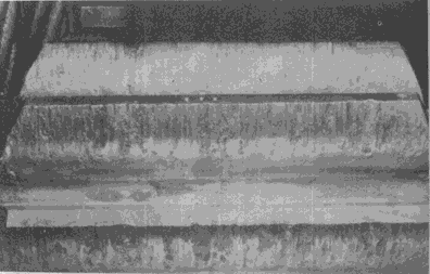 高速運轉(zhuǎn)齒輪齒面頂部的沖蝕,其部位與潤滑劑噴嘴的方向一致。
