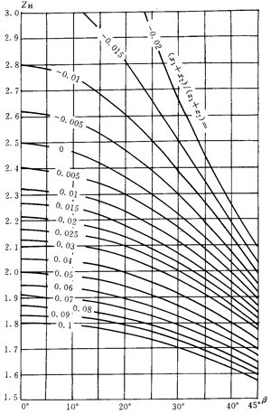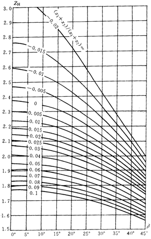式中:zn1,zn2——小、大(斜)齒輪當(dāng)量齒數(shù)。對于內(nèi)嚙合齒輪,式中(150)中的,zn2應(yīng)取為無限大。