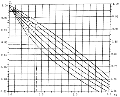 重合度系數(shù)Yε是將載荷由齒頂轉(zhuǎn)換到單對齒嚙合區(qū)外界點(diǎn)的系數(shù)。