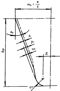 注:an=20°;hap/ mn =1.0,hfp/mn=1.25;ρfp/mn=0.38