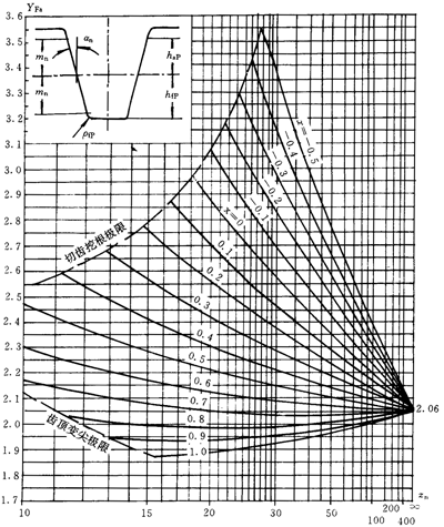 對于齒形角an為20°的齒輪,Ysa可按式(210)計(jì)算。對于其他齒形角的齒輪,可按此式近似計(jì)算Ysa。