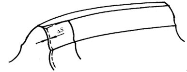 分別包含同一條齒面接觸跡線(凸齒面或凹齒面)各一個端點的兩個軸平面所截取的分度圓弧長。