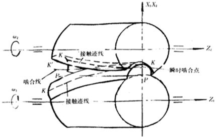一對齒輪在嚙合過程中,瞬時嚙合點在固定坐標空間的軸跡(見4.3條圖示)。