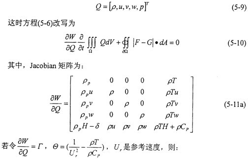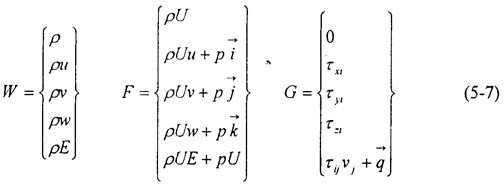 Ω是控制體邊界面,W是求解變量,F(xiàn)是無粘通量,G是粘性通量。