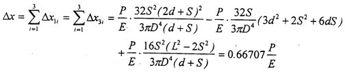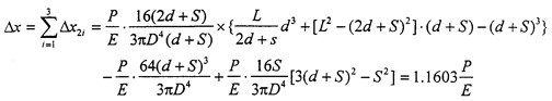 上式方程數(shù)為9個(gè),而方程中未知量的總數(shù)為12個(gè),故存在3個(gè)多余未知量。根據(jù)前述的變形協(xié)調(diào)條件,建立3個(gè)變形協(xié)調(diào)方程,作為機(jī)械受力分析的補(bǔ)充方程,利用高期消元法即可求解。