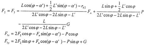 如果不計(jì)兩上支承軸重力的影響,則兩上支承軸O2B、O3C可看作二力桿,它的作用力如圖所示。不考慮制造誤差和載荷分配不均勻因素的影響,可以補(bǔ)充方程:F2=F3,則聯(lián)立求解得到: