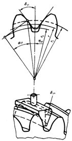 對(duì)于X=0的齒輪,理論齒厚或公稱齒厚通常等于分度圓上的齒距的一半。除非有專門的規(guī)定,一個(gè)未裝配的齒輪其實(shí)際最大齒厚常常比理論值要小,因?yàn)橹圃煺叱3R詼p小齒厚來(lái)實(shí)現(xiàn)側(cè)隙。