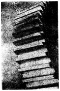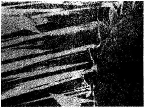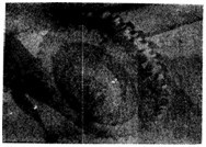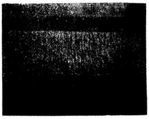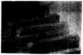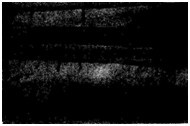 航空齒輪m=3mm,滲碳淬火后磨削,因磨削工藝不當(dāng)造成齒面條狀磨削裂紋(磁化后照像)。