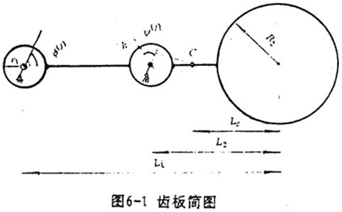 齒板簡圖如圖6-1所示。以齒板支承軸孔與偏心套的接觸點為參考點,則齒板質(zhì)心的位移為