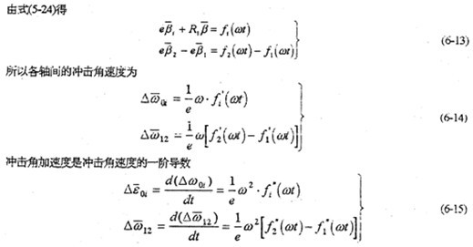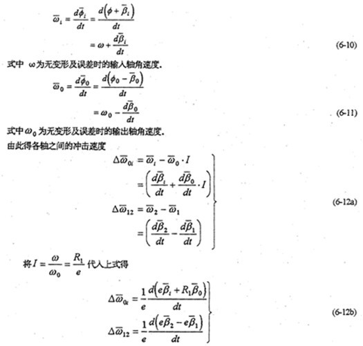 由于減速器機構(gòu)的變形及各構(gòu)件的誤差,使各傳動軸的角速度及角加速度不再滿足條件式(6-8)及式(6-9),亦在運轉(zhuǎn)過程中各軸之間存在角速度及角加速度的沖擊現(xiàn)象。該沖擊將直接導致系統(tǒng)振動,使輸出速度產(chǎn)生波動、降低其輸出的穩(wěn)定性,并產(chǎn)生沖擊載荷。