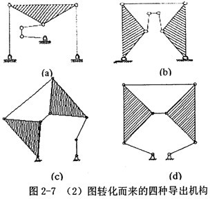由(2)圖,取不同的構(gòu)件為機(jī)架,經(jīng)過特定化后,可轉(zhuǎn)化為四種導(dǎo)出機(jī)構(gòu),如圖2-7。