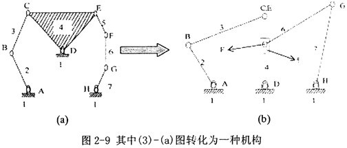 (1)一般化,是指將具有機(jī)件和運(yùn)動副的原始機(jī)械裝置,轉(zhuǎn)化為只有一般化連桿和一般化(運(yùn)動)副的機(jī)構(gòu),這樣形成的閉環(huán)鏈稱為一般化(運(yùn)動)鏈。