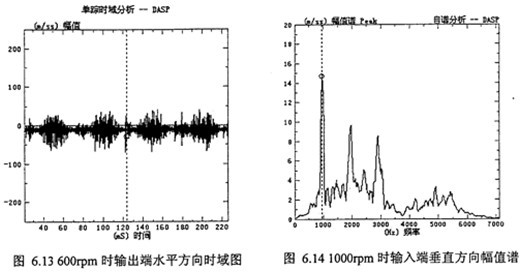 (3)從表6.1及圖6.5分析可看出,各測點振動幅值譜嚙合頻率及兩倍嚙合頻率其幅值為最大或較大,表明減速器兩端偏心軸轉動一周過“死點”位置時,減速器有沖擊振動現(xiàn)象。