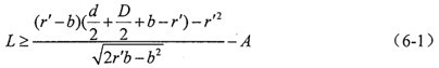 由于球狀銑刀的刀刃部分為半球頭形狀,為避免球頭銑刀的刀柄與殼體內壁發(fā)生干涉,導致內空間正弦滾道被銑削出平面,則空間正弦曲線的平衡位置到殼體端面的距離L應滿足一定的條件,由圖6-2中各參數的關系,可以得到