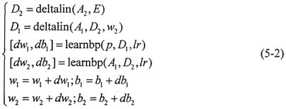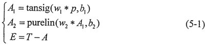 SSE=sumsqr (T-pruelin(w2*tansig(w1*P,b1),b2))         (5-3)